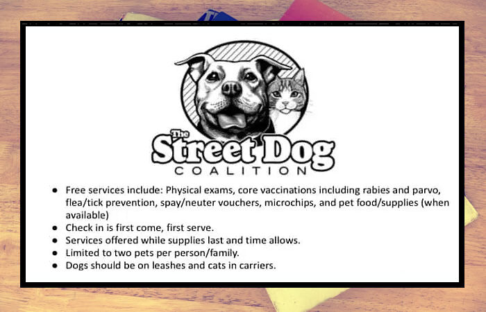 Free vaccines (except rabies), pet food and supplies,